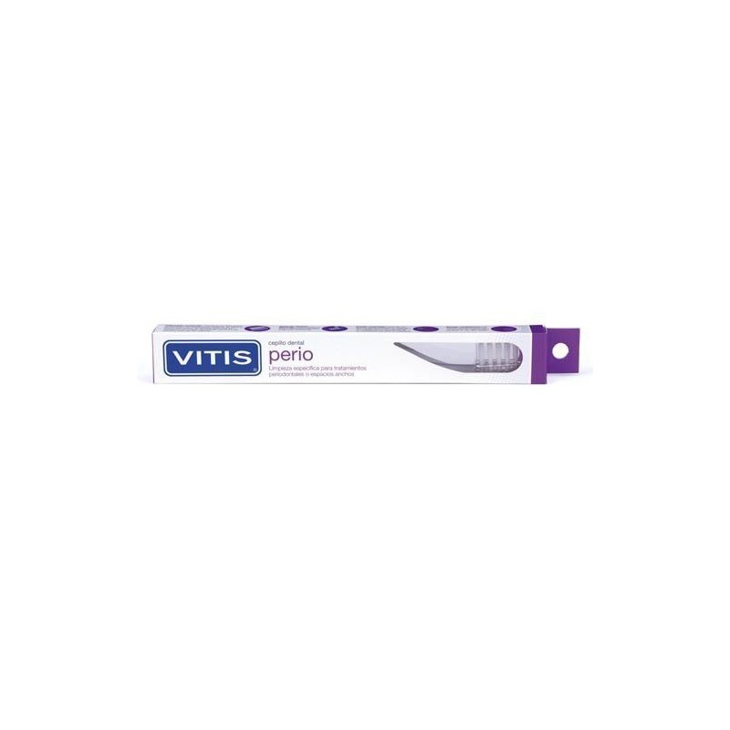 VITIS PERIO CEPILLO DENTAL ESTÁ ESPECIALEMENTE DISEÑADO PARA ELIMINAR EL BIOFILM ORAL (PLACA BACTERIANA) EN PERSONAS CON PROBLEMAS PERIODONTALES O ESPACIOS INTERDENTALES ANCHOS. ES UN CEPILLO DE USO DIARIO CON UN MAYOR ESPACIO ENTRE LOS PENACHOS (GRUPO DE FILAMENTOS) DEL CABEZAL, LO QUE PERMITE UN MEJOR ACCESO A LOS ESPACIOS INTERDENTALES ANCHOS, ADEMÁS LOS FILAMENTOS SON SUAVES Y CON PERFIL RECTO PARA RESPETAR LAS ENCÍAS CON ENFERMEDAD PERIODONTAL.