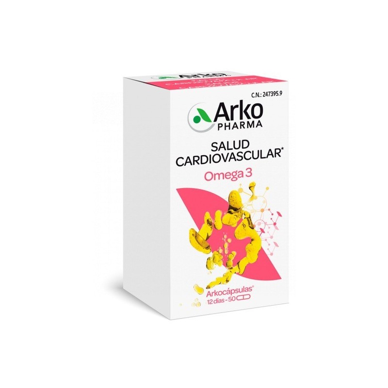 Arkocápsulas® Omega 3 es un complemento alimenticio formulado para promover la salud cardiovascular. Contiene aceite de pescado rico en ácidos grasos esenciales como el ácido eicosapentaenoico (EPA) y el ácido docosahexaenoico (DHA), que son fundamentales para el buen funcionamiento del corazón y el cerebro.