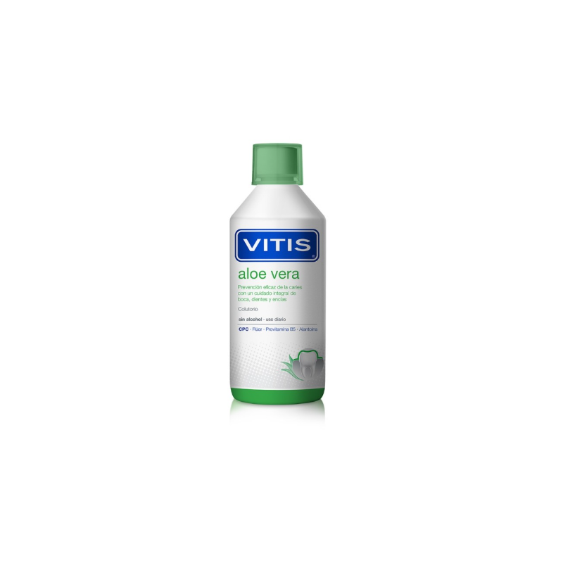 VITIS ALOE VERA COLUTORIO SABOR MENTA ES UN ENJUAGUE BUCAL CON EFECTO ANTISÉPTICO QUE ELIMINA EL BIOFILM ORAL DE LA CAVIDAD BUCAL, LLEGANDO A LAS ZONAS DE DIFÍCIL ACCESO, COMO LAS ZONAS POSTERIORES. SU COMPLETA FORMULACIÓN CONTIENE LOS PRINCIPIOS ACTIVOS NECESARIOS PARA UNA HIGIENE BUCAL ÓPTIMA. SU USO DIARIO PROPORCIONA CUIDADO INTEGRAL DE BOCA, DIENTES Y ENCÍAS DEJANDO UN AGRADABLE Y REFRESCANTE SABOR A MENTA.
