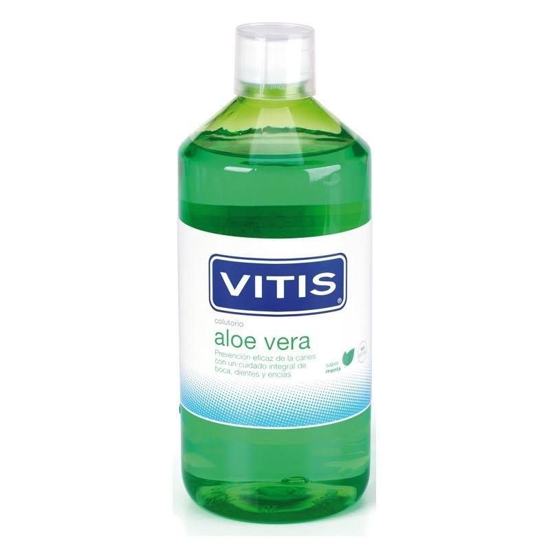 VITIS ALOE VERA COLUTORIO SABOR MENTA ES UN ENJUAGUE BUCAL CON EFECTO ANTISÉPTICO QUE ELIMINA EL BIOFILM ORAL DE LA CAVIDAD BUCAL, LLEGANDO A LAS ZONAS DE DIFÍCIL ACCESO, COMO LAS ZONAS POSTERIORES. SU COMPLETA FORMULACIÓN CONTIENE LOS PRINCIPIOS ACTIVOS NECESARIOS PARA UNA HIGIENE BUCAL ÓPTIMA. SU USO DIARIO PROPORCIONA CUIDADO INTEGRAL DE BOCA, DIENTES Y ENCÍAS DEJANDO UN AGRADABLE Y REFRESCANTE SABOR A MENTA.
