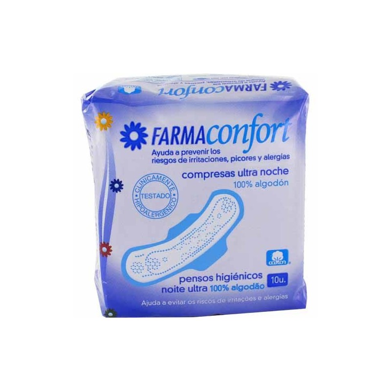 Farmaconfort Compresas Ultrafinas 100% Algodón Noche Alas 10uds