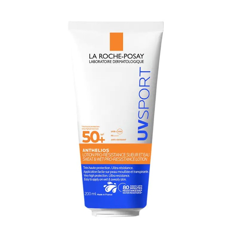 Loción resistente al sudor y la humedad spf50+ de la roche posay ofrece una protección uv muy alta formulada para resistir incluso actividades de alta intensidad. Está enriquecida con vitamina e, glicerina y agua termal de la roche-posay. La combinación de estos activos dermatológicos hidrata la piel, protege contra el estrés oxidativo gracias a sus propiedades antioxidantes y preserva la barrera cutánea. Y gracias a la tecnología wetskin, permite aplicar el producto incluso sobre la piel húmeda o con sudor. 16 horas de acción antioxidante y 24 horas de hidratación. Protege la piel de las molestias causadas por la deshidratación de la sal y el cloro. Hipoalergénica, dermatológicamente testada y de alta tolerancia en pieles sensibles.