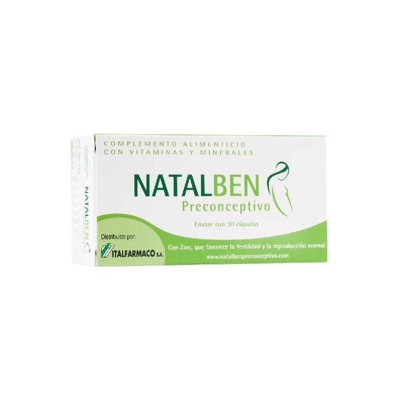 Natalben Preconceptivo es un suplemento alimenticio pensado para mujeres que quieren quedarse embarazadas. Favorece la fertilidad y reproducción normal y contribuye a que el desarrollo del feto sea óptimo gracias al aporte nutricional que contiene su fórmula.