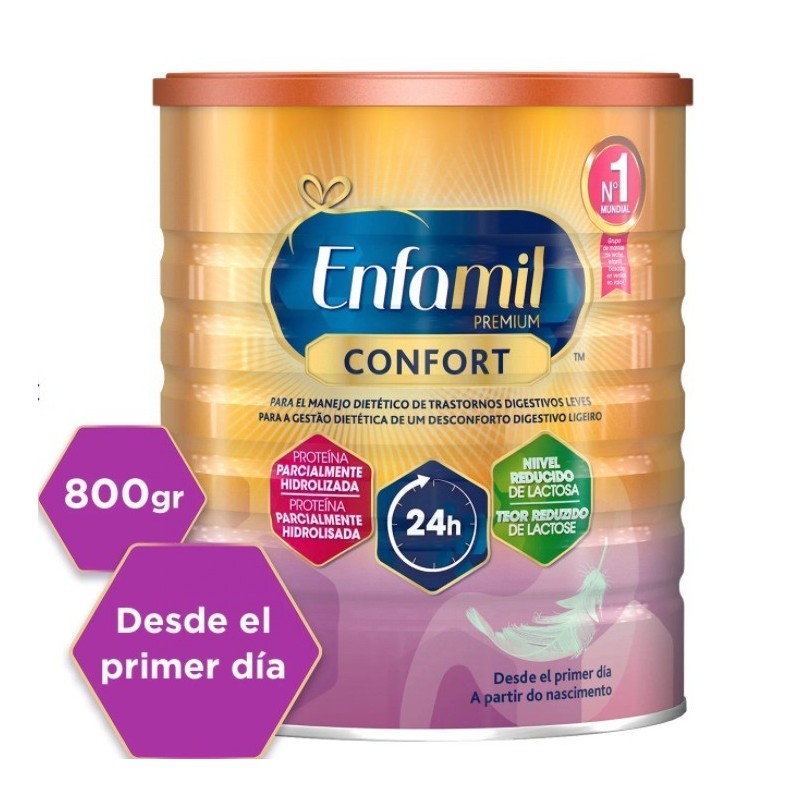 ENFAMIL PREMIUM CONFORT ES UNA LECHE PARA LACTANTES PARCIALMENTE HIDROLIZADA, CUYAS PROTEÍNAS HAN SIDO FRAGMENTADAS EN TAMAÑOS MÁS PEQUEÑOS, HACIÉNDOLA MÁS FÁCIL DE DIGERIR.  CONTIENE UNA CANTIDAD REDUCIDA DE LACTOSA POR LO QUE HACE QUE TENGAN UNA MEJOR DIGESTIÓN. CONTIENE UNA MEZCLA ESPECIAL DE:- DHA- TAURINA- VITAMINAS Y MINERALES PARA EL CORRECTO CRECIMIENTO Y DESARROLLO DEL BEBE.