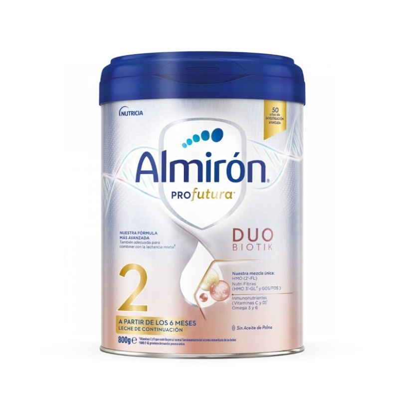 FRUTO DE NUESTROS ÚLTIMOS DESCUBRIMIENTOS CIENTÍFICOS TRAEMOS NUESTRA FÓRMULA ALMIRÓN PROFUTURA DUOBIOTIK 2, NUESTRA FÓRMULA MÁS CERCANA A LA LECHE MATERNA, UNA GENERACIÓN DE FÓRMULAS ESPECIALMENTE DESARROLLADAS PARA AYUDAR AL SISTEMA INMUNITARIO* DE TU BEBÉ.ALMIRÓN PROFUTURA DUOBIOTIK 2 CON COMPONENTES TAMBIÉN PRESENTES EN LA LECHE MATERNA1 (HMOS).TAMBIÉN ADECUADA PARA LACTANCIA MIXTA Y PARA LA TRANSICIÓN DESDE LA LECHE MATERNA.NUESTRA MEZCLA PATENTADA DE GOS/FOS CON GRASA LÁCTEA.NUESTRO DISTINTIVO RATIO DHA**: AA. CON ALA**:CONTRIBUYE AL DESARROLLO CEREBRAL Y DE LOS TEJIDOS NERVIOSOS.INMUNONUTRIENTES (VITAMINAS C Y D)*:AYUDAN AL NORMAL FUNCIONAMIENTO DEL SISTEMA INMUNITARIO.2HMO´S (OLIGOSACÁRIDOS TAMBIÉN PRESENTES EN LA LECHE MATERNA):2-FUCOSIL-LACTOSA (2´FL) Y 3-GALACTOSIL-LACTOSA (3´GL). 3´GL PROVIENE DE NUESTRO PROCESO ÚNICO.CON VITAMINAS B2**:CONTRIBUYE AL NORMAL METABOLISMO ENERGÉTICO.OMEGA 3 Y 6.