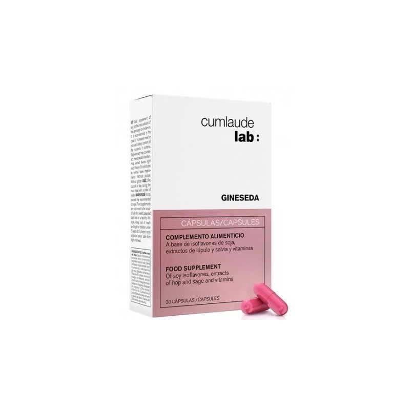 Los principales activos deCumlaude Gineseda son isoflavonas de soja activas, lúpulo, salvia officinalis, aceite de onagra y vitaminas E. B6 y D3.