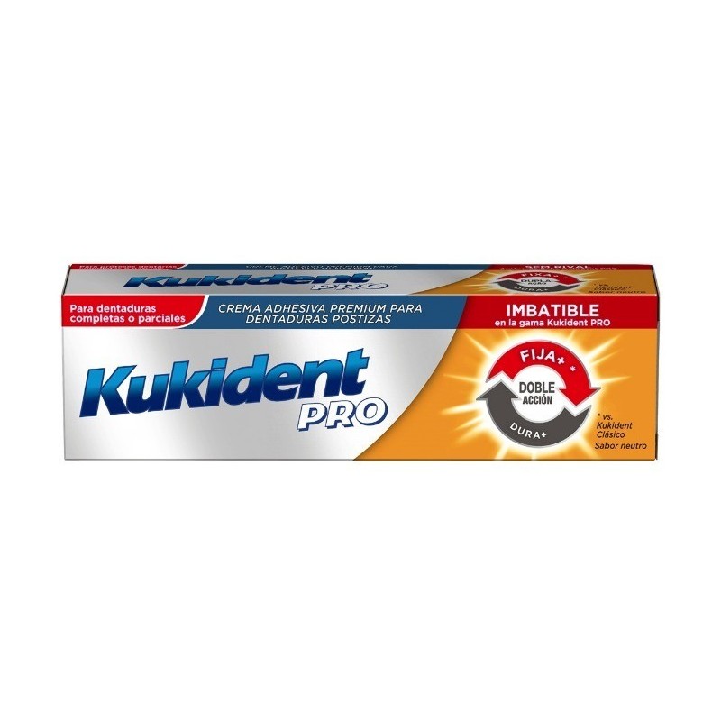 • El adhesivo premium para prótesis dentales Kukident Pro con sabor neutro ha sido especialmente diseñado para proporcionar la mejor fijación dentro de la gama Kukident.