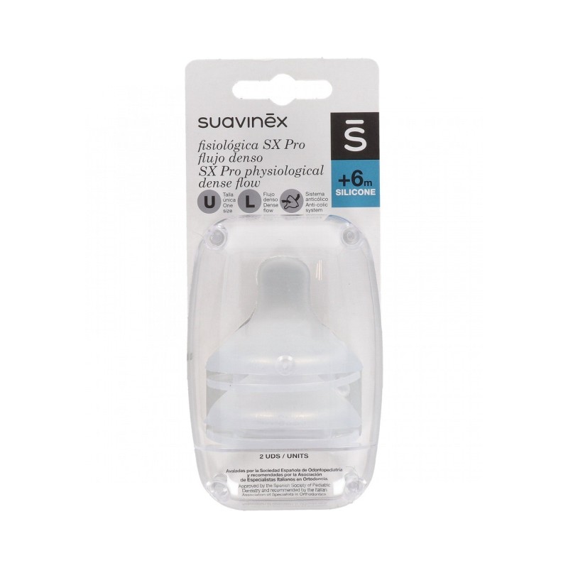 Suavinex Tetina Fisiológica Silicona Flujo L +6M 2uds