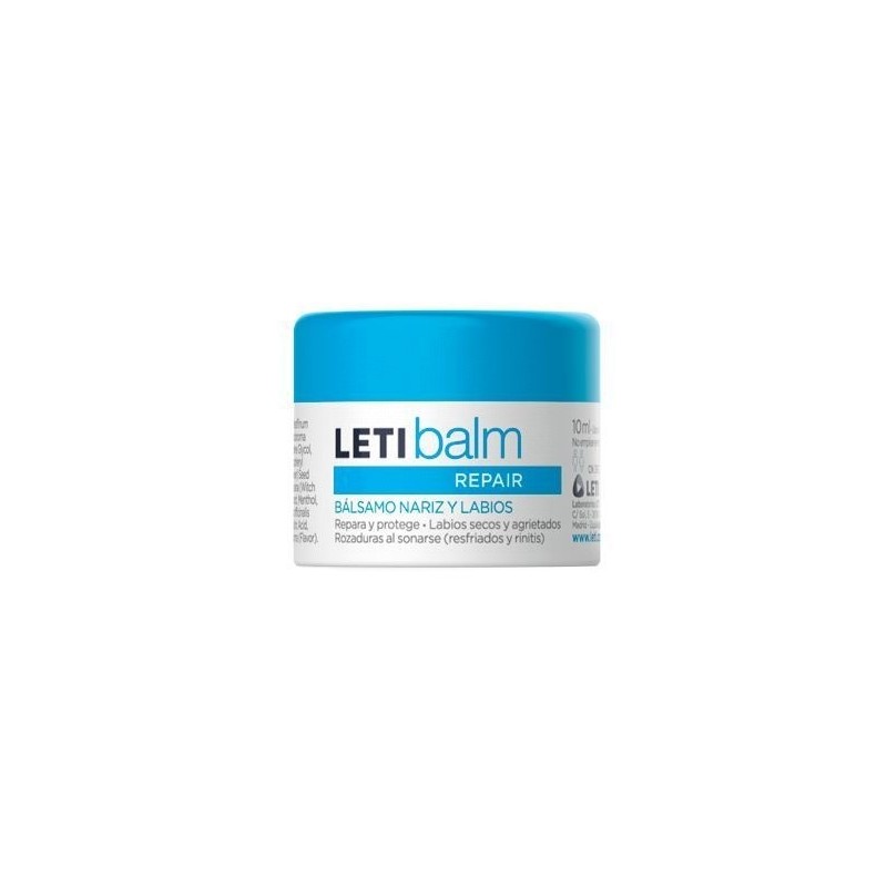 LETI BALM BÁLSAMO REPARADOR ESTÁ ESPECIALMENTE INDICADO PARA EL CUIDADO DE LAS ZONAS ALTERADAS O IRRITADAS DE NARIZ Y LABIOS, CASOS QUE SE DAN SOBRE TODO EN RESFRIADOS O PROCESOS CATARRALES.LETI BALM BÁLSAMO REPARADOR AYUDA A ALIVIAR LAS ROZADURAS CAUSADAS POR EL USO EXCESIVO DE PAÑUELOS, LA ALTERACIÓN QUE SE PRODUCE POR EL FRÍO O EL VIENTO Y LOS LABIOS AGRIETADOS.NO ES RECOMENDABLE EMPLEAR EN NIÑOS MENORES DE 3 AÑOS.