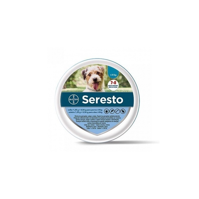 [PERROS] (menos de 8 kg): - Prevención (Ctenocephalides felis, C. Canis) y tratamiento de la [INFESTACION POR PULGAS (VET)] (Ctenocephalides felis) durante 7-8 meses. Protege el entorno inmediato del animal al inhibir el desarrollo de larvas de pulga durante 8 meses. - Tratamiento de la [DERMATITIS ALERGICA POR PULGAS (VET)] (DAPP). - Eficaz contra las [INFESTACION POR GARRAPATAS (VET)] durante 8 meses por su efecto repelente (antialimentación) (Ixodes ricinus, Rhipicephalus sanguineus) y su efecto acaricida (muerte del parásito) (Ixodes ricinus, Rhipicephalus sanguineus, Dermacentor reticulatus). Eficaz contra larvas, ninfas y garrapatas adultas. - Protección indirecta frente a la transmisión de los patógenos Babesia canis vogeli ([BABESIOSIS (VET)]) y Ehrlichia canis por la garrapata Rhiphicephalus sanguineus y en consecuencia, se disminuye el riesgo de babesiosis canina y ehrliquiosis canina durante 7 meses. - Tratamiento de la infestación por piojos picadores/masticadores (Trichodectes canis). - Reducción del riesgo de [LEISHMANIOSIS (VET)] infantuma través de la transmisión por flebotomos hasta 8 meses.